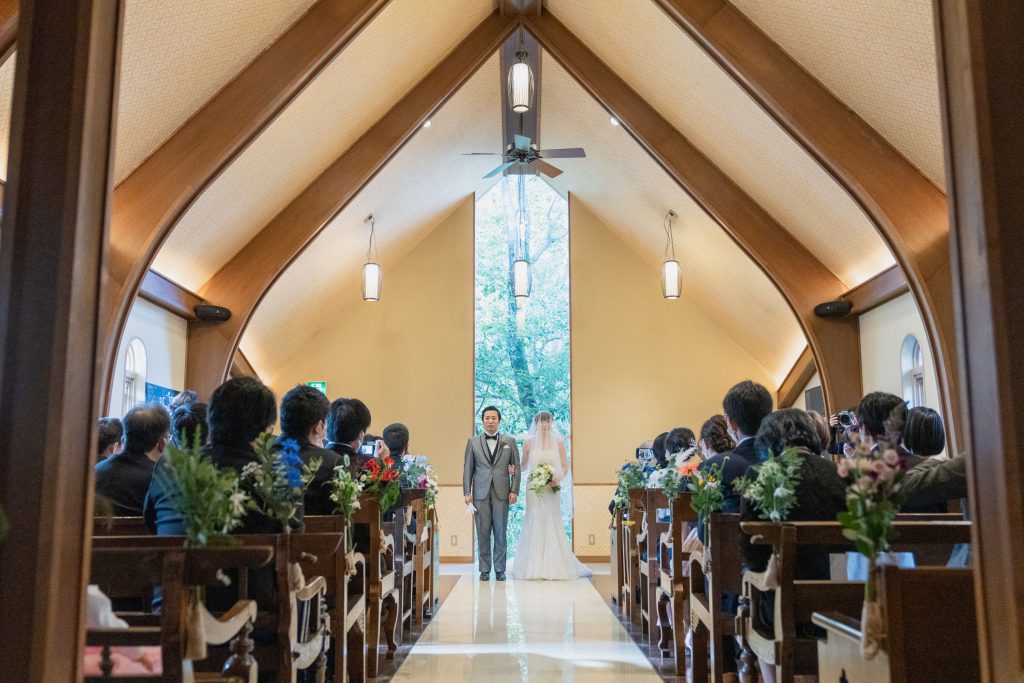 新郎様の元へ歩みを進めるバージンロードは