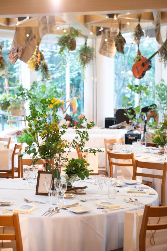 • 会場の装飾には新郎様のお好きなギターを使ったコーディネート