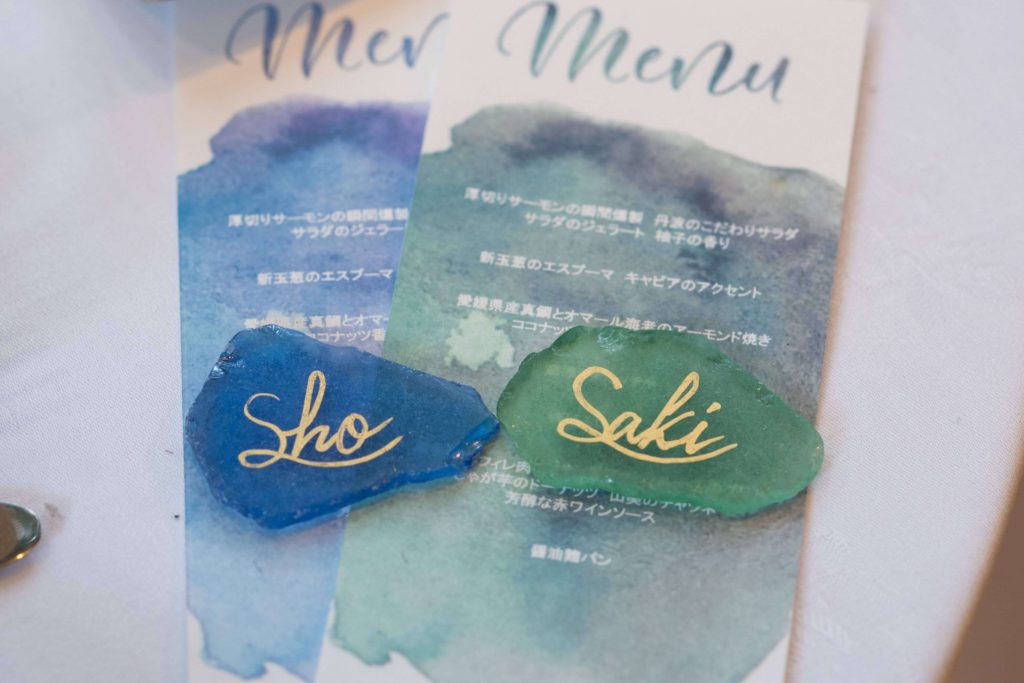 • 当日のペーパーアイテムはシーグラスの席札