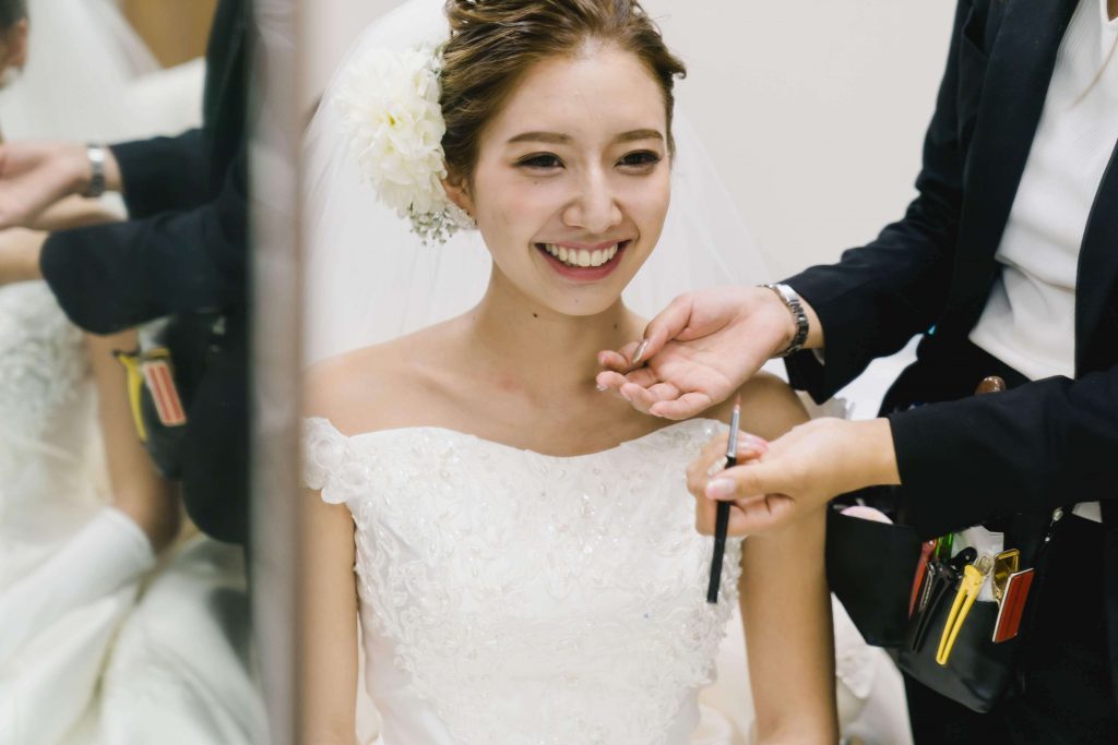 挙式後は船内での控室にてお仕度を整えて