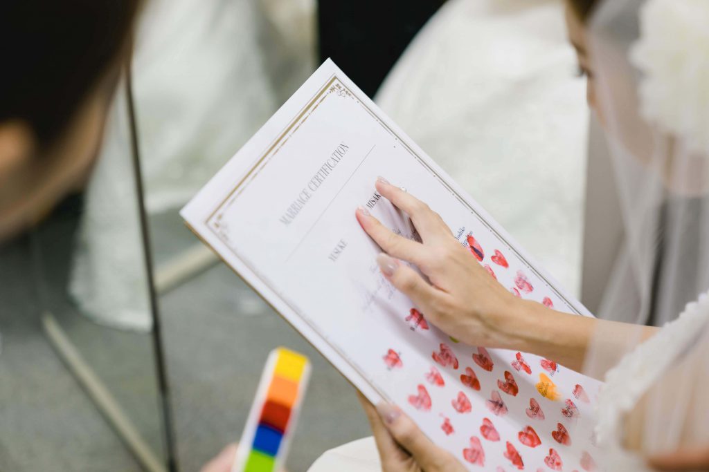 新郎様、花嫁様も同じく証明書に拇印を押されます。 -