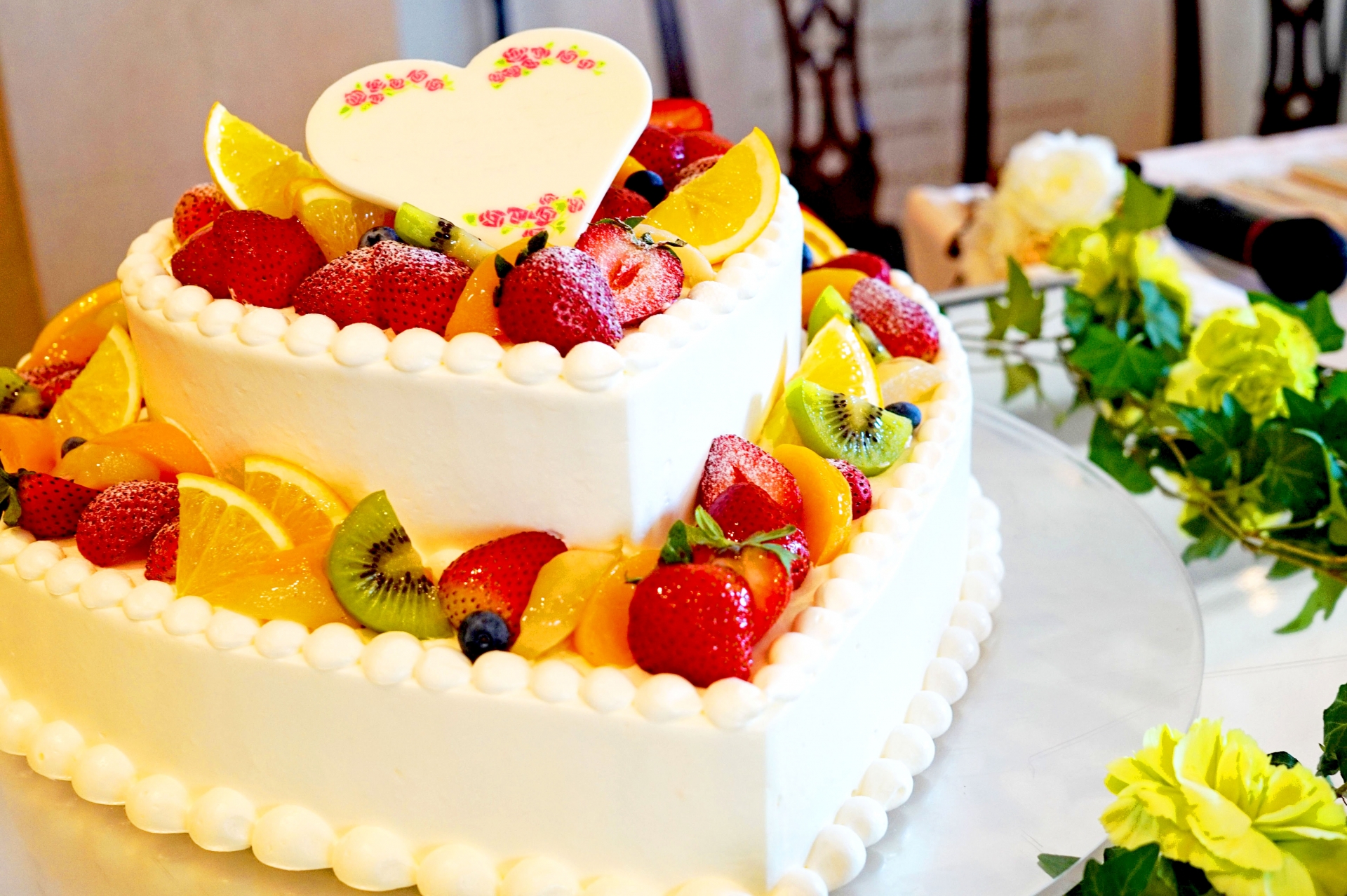 真っ白のケーキだからこそ、装飾が映えるのもホワイトケーキの魅力。