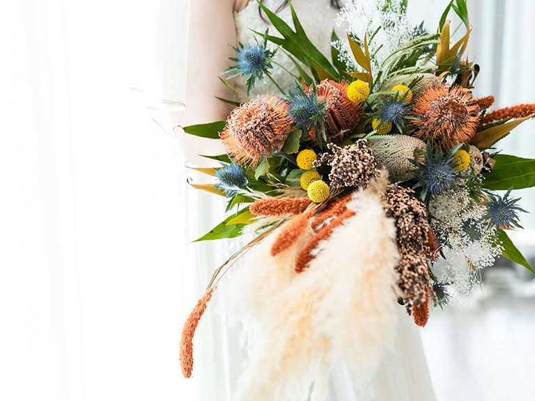 ドレスやビューティー、当日のコーディネートを何ランクもアップして完成させる、センスあふれるブーケにご期待ください。
